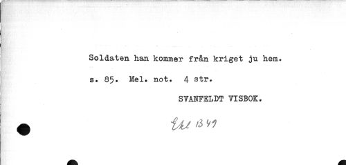 //// Soldaten han kommer från kriget ju hem. s. 85. Mel. not. 4 str. //// SVAIFELDT VISBOK. //// ^ iAJ ////