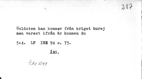 //// m //// ! //// Soldaten han kommer från kriget hurej men varest ifrån är kommen du //// 5:4. LF INE 94 s. 73- //// ÅBO. //// i //// '{Ät /3ff //// i //// i i ////