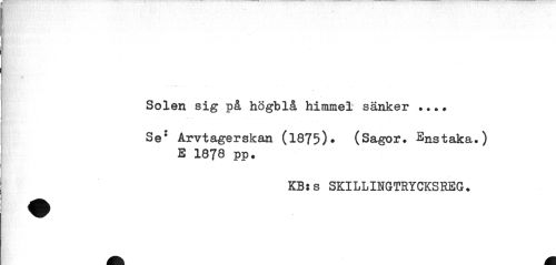 //// Solen sig på högblå himmel sänker ... //// Se: Arvtagerskan (1875)? (Sagor. Enstaka.) E 1878 pp# //// KB: s SKILLIIGTRYCKSHEG. ////