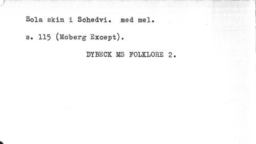 //// Sola skin i Schedvi. med mel. //// i //// ! //// f ¦ //// s. 115 (Moberg Except). //// DYBECK MS FOLKLORE 2. //// i //// i //// / ////