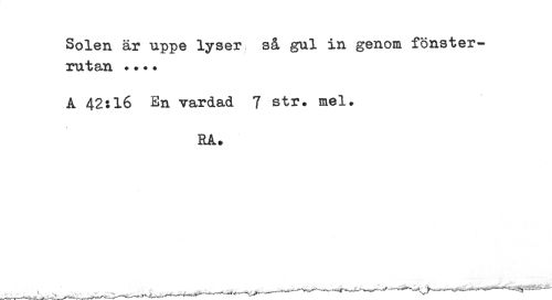 //// Solen är uppe lyser så gul in genom fönsterrutan • ?.. //// A 42:16 En vardad 7 str. mel. //// RA* ////