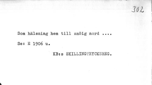//// 261 //// f //// I //// I //// I I //// 1 //// f //// Som hälsning hem till snöig nord //// Se: E 1906 u• i //// 1 //// KB: s SKILLINGTBYCKSBEG. //// i 1 f //// l ////