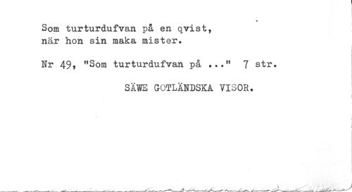 //// w //// Som turturdufvan på en qvist, när hon sin maka mister. //// • //// r I //// 1 //// Nr 49, "Som turturdufvan på ..." 7 str. //// SÄ1S GOTLÄNDSKA VISOR. //// i //// i l 5 ////