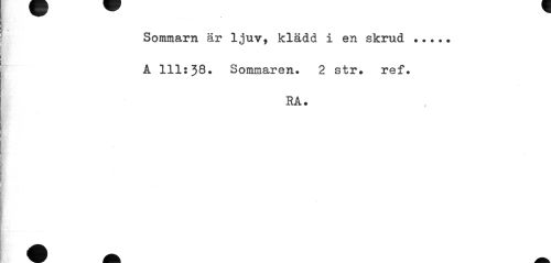 //// v //// Sommarn är ljuv, klädd i en skrud A 111:38. Sommaren. 2 str. ref. //// RA. //// i ////