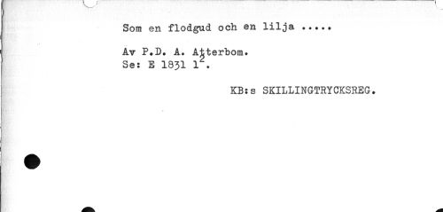 //// Som en flodgud och en lilja //// Av P#D. A. Atterbom. Se: E 1831 1 • //// KB:s SKILLINGTRYCKSBEG* ////