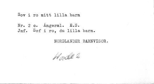 //// Sov i ro mitt lilla "barn //// Nr. 2 c» Ångerml. E.S. Jmf. Sof i ro, du lilla barn. //// NORDLANDER BARNVISOR. ////