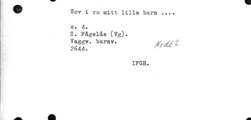//// ® Sov i ro mitt lilla barn ... //// s. 4. //// S. Fågelås (Vg). Vaggy. barnv. //// IFGH. ////