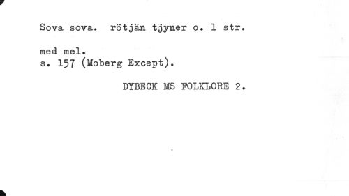//// Sova sova. rötjän tjyner o. 1 str. med mel. //// s. 157 (Moberg Except). //// DYBECK MS FOLKLORE 2. //// 1 ////