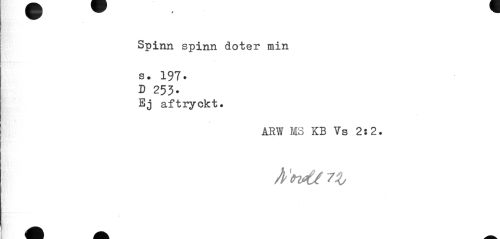 //// Spinn spinn doter min //// s. 197. //// D 253. //// Ej aftryckt. //// ARW MS KB Vs 2:2. ////