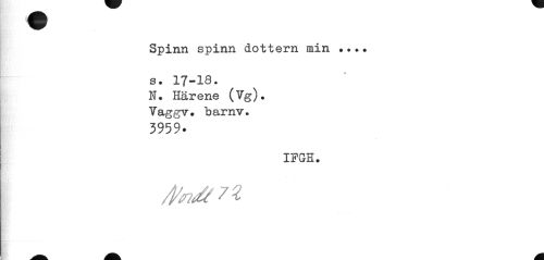 //// Spinn spinn dottern min ... //// s. 17-18. N. Härene (Vg). Vaggv. barnv. //// 3959. //// IFGH. //// fa/t 7 Z ////