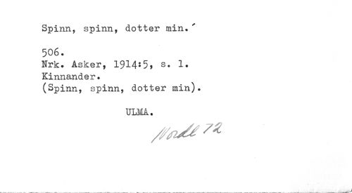 //// Spinn, spinn, dotter min.' 506. //// Urk. Asker, 1914*5> s. 1. Kinnander? //// (Spinn, spinn, dotter min). //// ULMA. ////