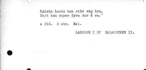 //// Spisbo Lasse han står säg bra, //// fast han super fyra dar å ra.' //// s 216. 2 str. Mel. //// LÅRSSON I BY DALASOCKEN II* ////