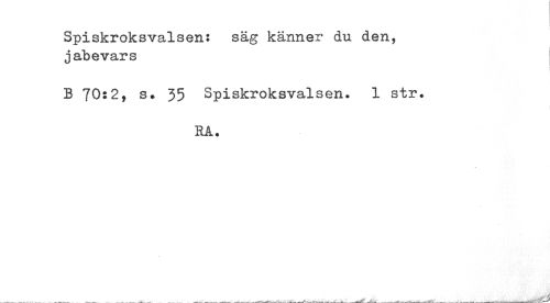 //// Spiskroksvalsen: säg känner du den, //// jabevars //// B 70:2, s* 35 Spiskroksvalsen. 1 str. //// RA. ////