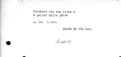 //// Stackare den söm liten ä å paltar milla gålar //// s. 18. 1 str. //// HARBE MS SVA kop. ////