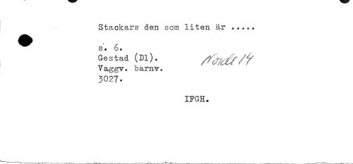 //// Stackars den som liten är ... //// ^^ s. 6. //// Gestad (Dl). Vaggv. barnv. //// 3027- //// IFGH. ////