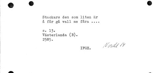 //// Stackars den som liten är å får gå vall me fåra ...» //// s. 13. //// Västerlanda (B). //// 2585- ////