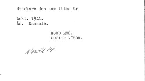 //// Stackars den som liten är //// Lekt. 1941. | //// Än. Ramsele. \ //// NORD MUS. KOPIOR VISOR. //// t //// i ////