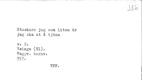 //// 35 fc //// Stackars jag som liten är jag ska ut å tjäna //// s* 2. //// Yeinge (Hl). "Vaggv. barnv. //// 9571 //// VFF. ////
