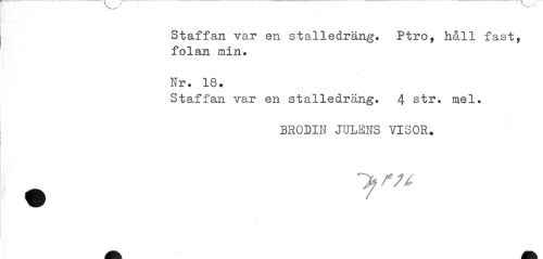 //// Staffan var en stalledräng. Ptro, håll fast, folan min. //// Nr. 18. //// Staffan var en stalledräng. 4 str. mel. //// BRODIN JULENS VISOR. ////