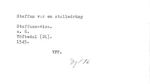//// Staffan var en ställedräng //// Staffans-visa. s. 6. //// Töftedal (Dl). //// 1545- //// VFF. //// ^SK ////