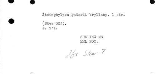 //// Stainghylpen ghärrdi bryllanp. 1 str. //// ^ (Säve 202). //// s. 241. //// SÖDLING MS MEL NOT. //// St- 7 //// 'V . _ ////