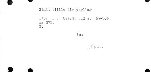//// Statt stilla dig yngling //// 1:5. LU. S.L.S. 512 s. 565-566. //// nr 271. N. //// ÅBO. //// J Lrti- o //// 4 Af^^ _ ////
