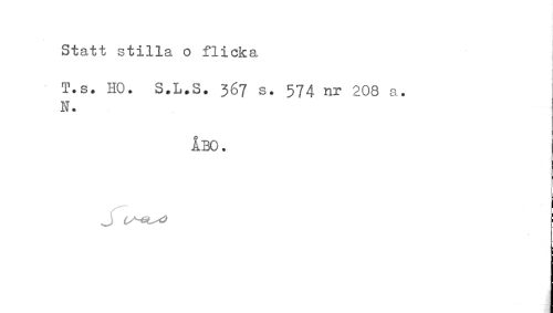 //// Statt stilla o flicka //// T.8. HO. 5.L.S. 367 s. 574 nr 208 a. N. //// ÅBO. ////