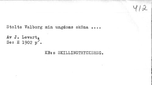 //// y/Ä. //// Stolts Valborg min ungdoms sköna • //// / //// Av J. Levart* Se: -E 1902 p . //// KB:s SKILLINGTEYCKSKEG. //// ¦ //// \ //// I ////