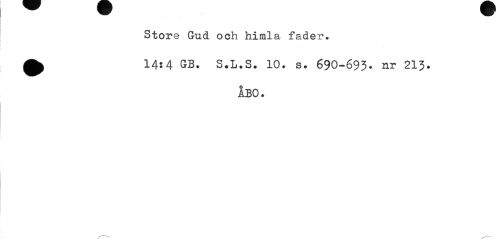 //// Store Gud och himla fader. ^ 14:4 GB. S.L.S. 10. s. 690-693. nr 213. //// ÅBO. ////