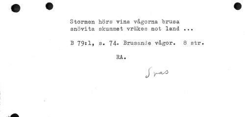 //// w w w //// Stormen hörs vina vågorna brusa snövita skummet vräkes mot land ... //// B 79*1> s* 74* Brusande vågor. 8 str. //// HÅ. //// J //// 3 ////