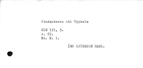 //// Studenterna uti Uppsala //// SLS 131, 3. s • 62. Ifo. K. 1. //// ÅBO SJÖBERGS SAML. ////