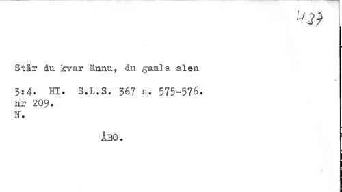 //// ¦ //// Står du kvar ännu, du gamla alen //// 3:4- Hl. S.L.S. 367 s. 575-576. //// nr 209. N. //// ¦ //// ÅBO. ////