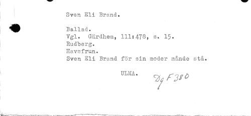 //// Sven Eli Brand» //// ^P Ballad. //// Vgl. Gärdhem, 111:478, s. 15. //// Rudberg. //// Havsfrun. //// Sven Eli Brand för sin moder månde stå. //// 11111 * ^ ////