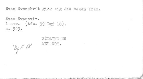 //// Sven Svanehvit gick sig den vägen fram. //// Sven Svanevit. 1 str. (Afz. 39 Dgf 18). //// s. 329- //// SODLING MS //// r. „ /t> MEL NOT. % f /y ////