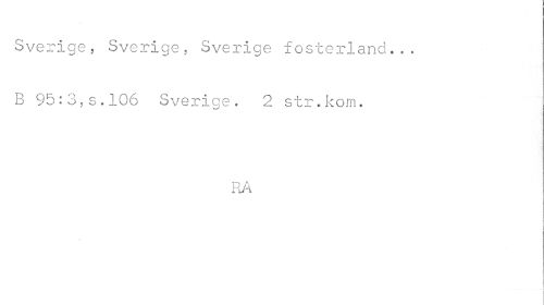 //// Sverige, Sverige, Sverige fosterland... B 95:3,s.106 Sverige. 2 str.kom. //// RA ////