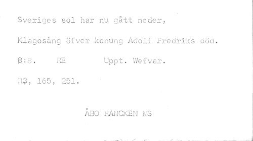 //// Sveriges sol har nu gått neoer, //// Klagosång öfver konung Adolf Fredriks död. //// RE Uppt. Wefvar. //// A X //// l //// i i vp • 1 O v ) « 2 J 1 * //// ÅBO RANCKEN MS //// , , ... å ////