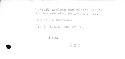 //// ...•""*! - - * <---• T- " UT //// Svårafe seglats man sällan finner //// o //// An den som sker pa lyckans hav. //// Den lilla matrosen. //// 5:4 ? S.L.S. 252 nr 13. //// J ////