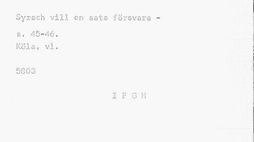 //// Syrach vill en sats försvara - //// s. 45-46. Köla, vi. //// 5803 //// I F G H ////