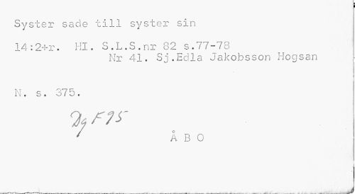 //// Syster sade till syster sin //// u * //// 14:2+r. Hl. S.L.S.nr 82 s.77-78 //// Nr 41. Si.Edla Jakobsson Hogsan //// i //// i v, s • ö7 o » //// i //// ' ÅBO //// ...__ ... J ////