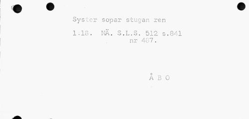 //// Syster sopar stugan ren //// 1.18. NÄ. S.L.S. 512 s.841 //// nr 487. //// ÅBO ////