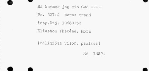 //// Så kominer jag min Gud--- //// Ps. 337:4 Moras trand insp.Rtj. 10660:53 Eliasson Therése, Mora //// (religiösa visor, psalmer) //// RA INSP * ////