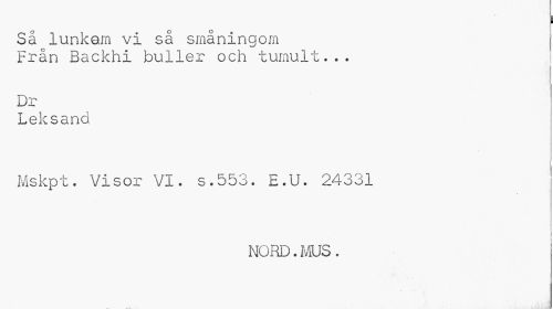 //// i //// Så lunkam vi så småningom Från Backhi buller och tumult... //// Dr //// Leksand //// i //// Mskpt. Visor VI. s.553. E.U. 24331 //// j //// NORD. IvUS. ////