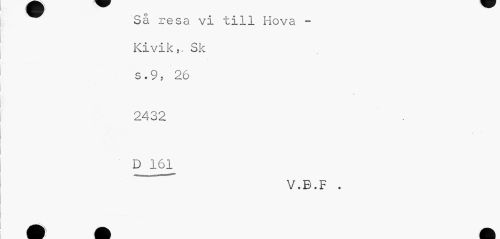 //// Så resa vi till Hova -Kivik,. Sk //// s.9, 26 //// > //// 2432 D161_ //// V.D.F . ////