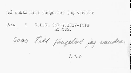 //// j //// Så sakta till fängelset jag vandrar //// 5:4 ? S.L.S. 367 s.1317-1318 i //// nr 502. j //// ¦ //// ÅBO j ////
