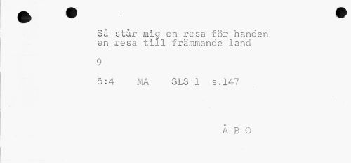 //// Så står mig en resa för handen en resa till främmande land //// 9 //// 5:4 MA SLS 1 s.147 //// ÅBO ////