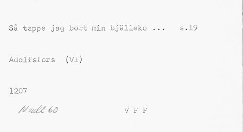 //// Så tappe jag bort min bjälleko ... s.19 //// Adolfsfors (VI) //// ¦ //// 1207 //// 6ö V F F ////