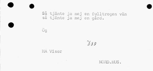 //// Så tjänte ja mej en fulltrogen vän //// sa tjänte ja mej en gärd. //// ? * //// Gg //// HA Visor //// NORD.MUS. ////