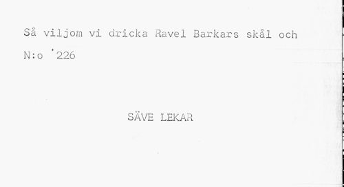 //// Så viljom vi dricka Ravel Barkars skål och • //// N:o '226 //// I //// I ¦ //// ! //// I //// SÄVE LEKAR ! //// I //// i ////