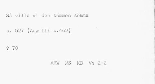 //// Så ville vi den sömmen sömme s. 527 (Arw III s.462) //// < //// ? 70 //// ARW MS KB Vs 2:2 //// ; ////