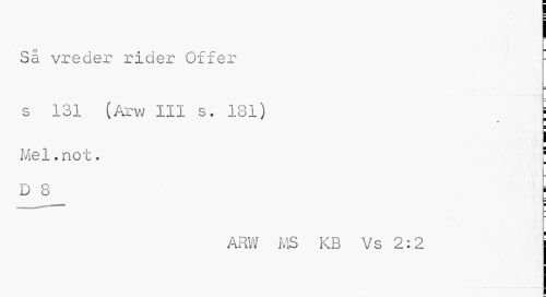 //// Så vreder rider Offer : //// s 131 (Arw III s. 181) ; //// ¦ //// ! //// Mel.not. ; //// D 8 ; //// ARM MS KB Vs 2:2 ////